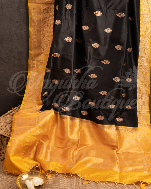 Banarasi Katan Silk Black Saree With Stitched Blouse In Size 38-44