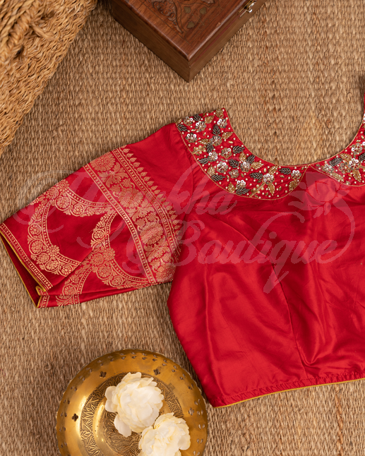 Banarasi Katan Silk Saree With Stitched Blouse In Size 38-44