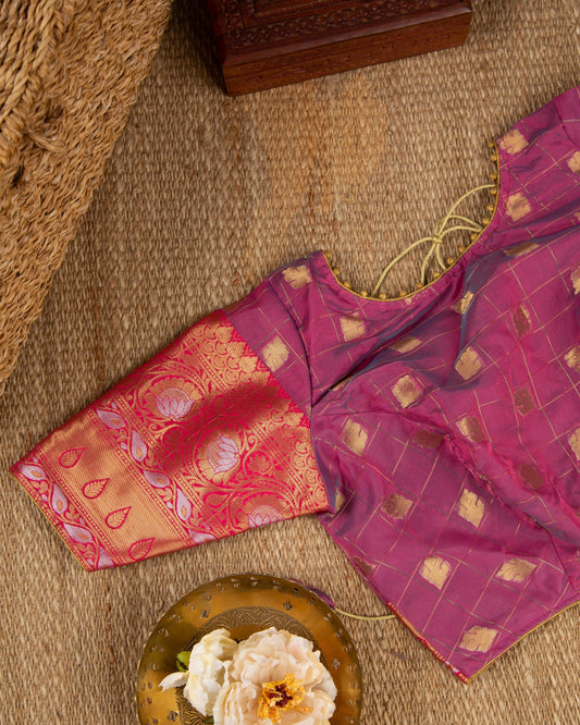 Banarasi Kora Blue & Pink Traditonal Awakening Saree With Stitched Blouse In Size 38-44