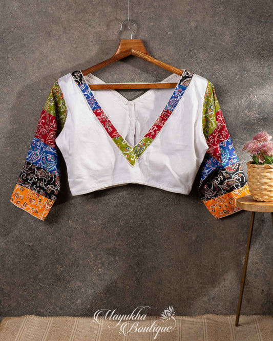 Teal and Maroon Mangalagiri Silk Saree with Ikkat Weave in the Border with Silver Zari and Kalamkari Printed Blouse | Blouse Size 38-44” | Free Shipping