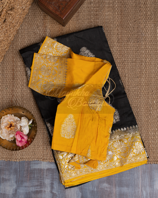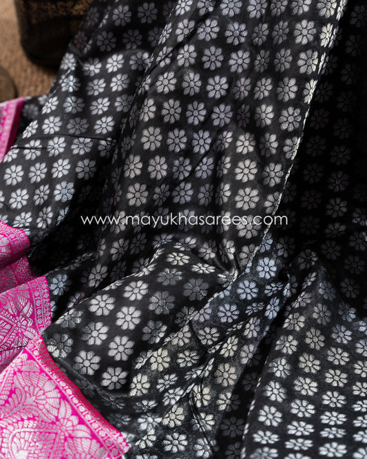 Black And Pink Banarasi Silk Saree Witth Stitiched Blouse