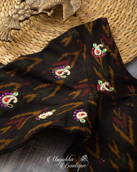 Blue And Green Gadwal Silk Saree With Stitched Blouse