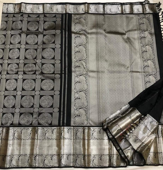 Black Kanchipuram Pure Silk Saree With Silver Zari