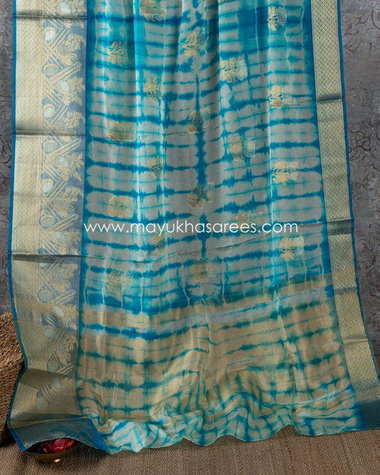 Blue Shibori Banarasi Kora Saree With Stitched Custom Blouse Size 38-44