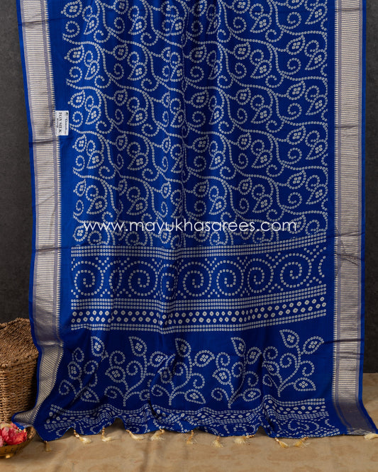 Chanderi Blend Bandini Print Blue & Beige Blue Bandhani Saree With Stitched Blouse In Size 38-44