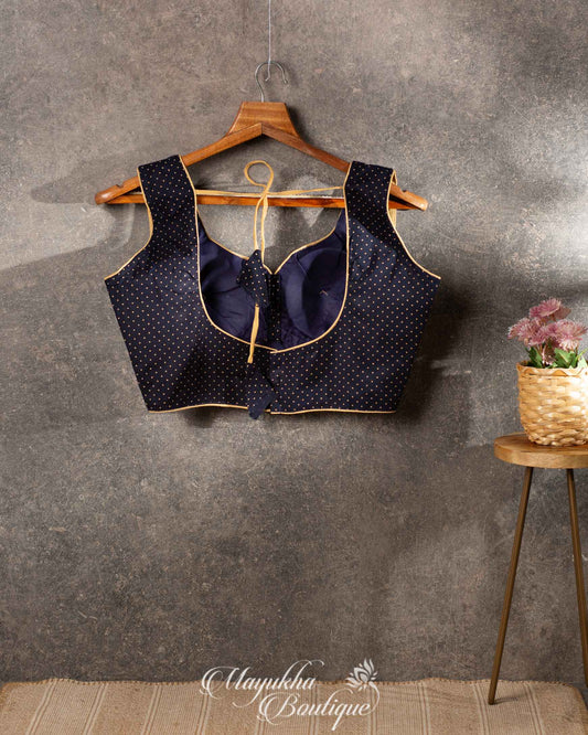 Blue Munga Silk Saree with Bandini Prints with Banarasi Inspired borders and Stitched Blouse in Size 38 44