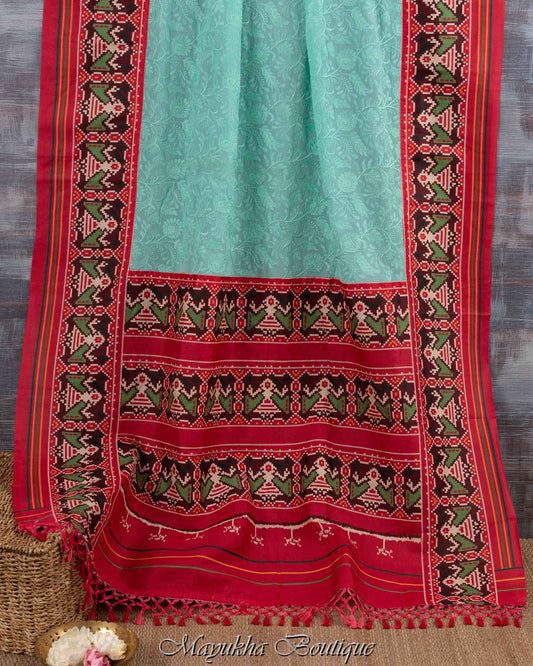 Sold outBlue Chikankari Ikat Saree