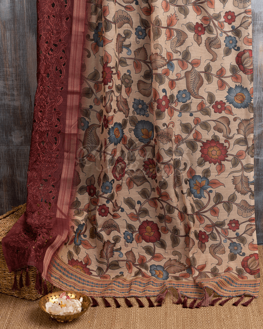 Chanderi Blend Beige Kalamakri Saree