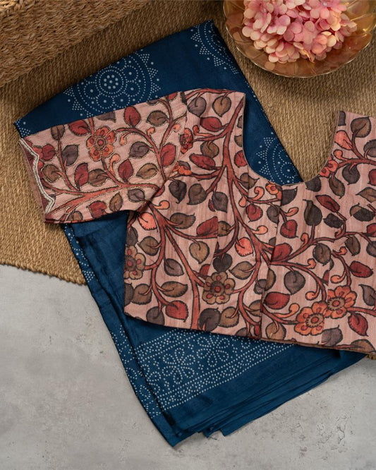 Teal Gajji Silk Saree with Kalamkari Handword Ajrak Silk Blouse | Blouse Size 38-44” | Free Shipping Printed Black Irkal Silk Saree with PinkBorders and Pearl Embroidered Pink Blouse | Blouse Size 38-44 | Free Shipping