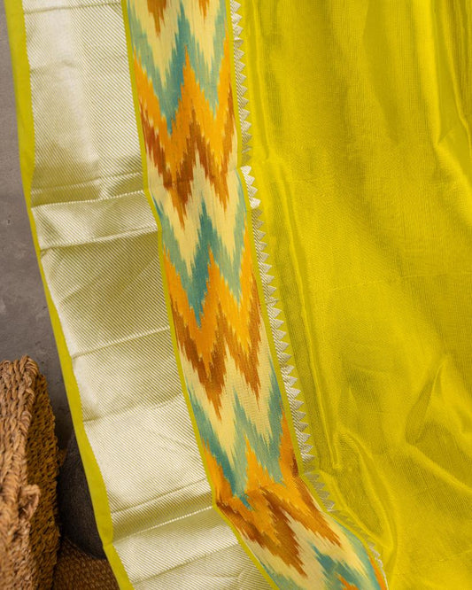 Yellow and Red Mangalagiri Silk Saree with Ikkat Weave in the Border with Silver Zari | Blouse Size 38-44” | Free Shipping