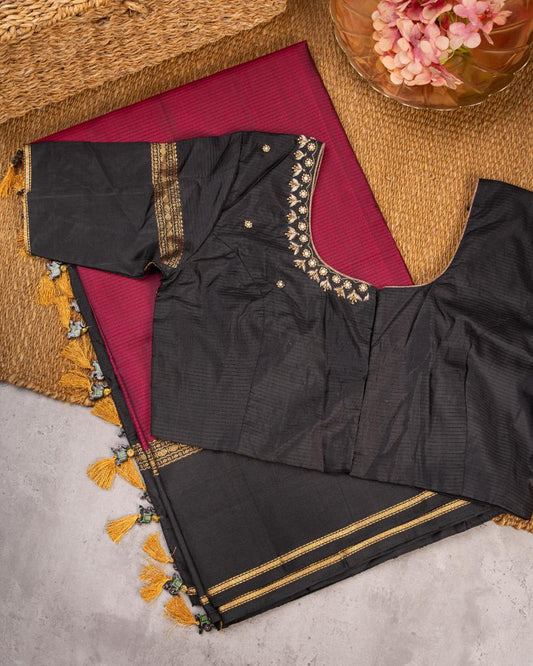 Wine Kanchipuram Silk Saree with Coffee brown Borders and Paisly woven Gold Zari Motifs | Blouse Size 38-44” | Free Shipping