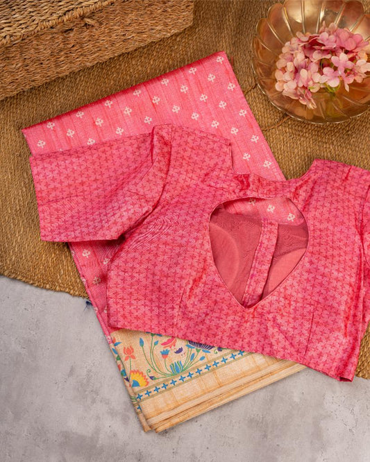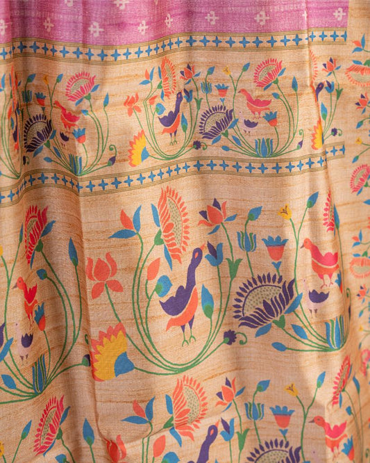 Pink Semi Tassar Silk Saree with Paithani Brocade printed Borders & Pallu | Blouse Size 38-44 | Free Shipping