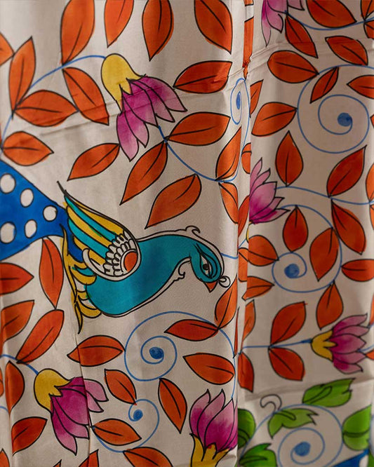 Kalamkari Hand Painted Off white Kanchipuram with double color border | Blouse Size 38-44” | Free Shipping