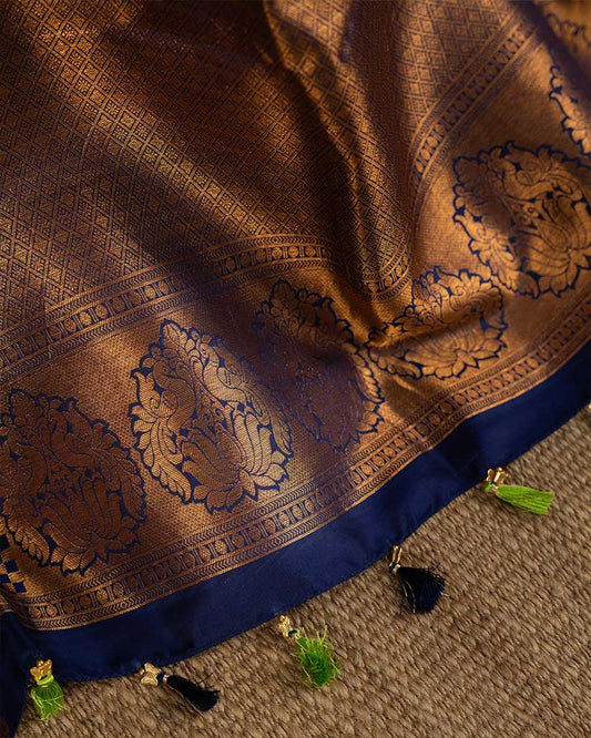 Very Unique Snuff and Blue Kanchipuram Silk Saree with Blue Handwork Blouse | Blouse Size 38-44 | Free Shipping