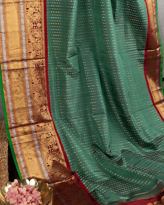 Teal Green Gadwal Brocade Silk saree with Maroon Cutdana Zardosi Handwork Blouse | Blouse Size 38-44” | Free Shipping