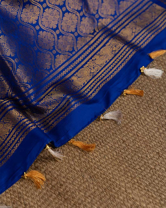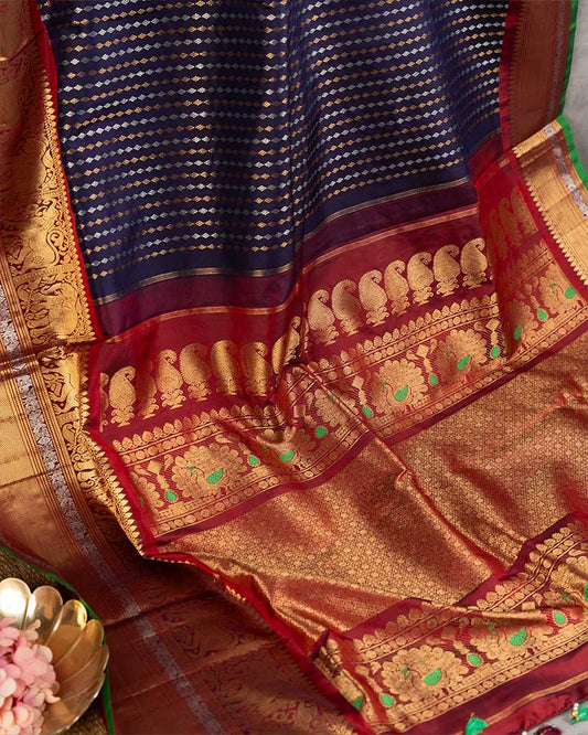 Ink Blue Gadwal Brocade Silk Saree with Maroon Cutdana and Zardosi Embroidered Blouse | Blouse Size 38-44 | Free Shipping
