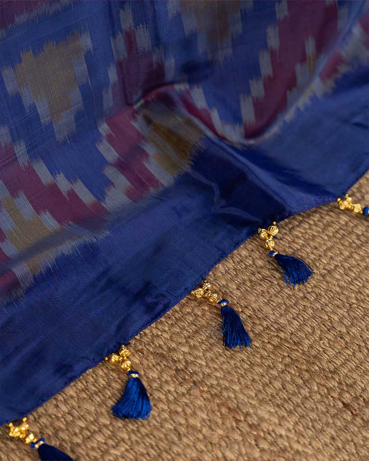 Dark Pink Ikkat Printed Silk Saree with Blue Handwork Blouse | Blouse Size 38-44 | Free Shipping