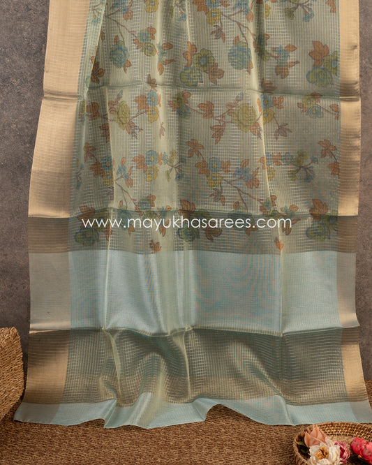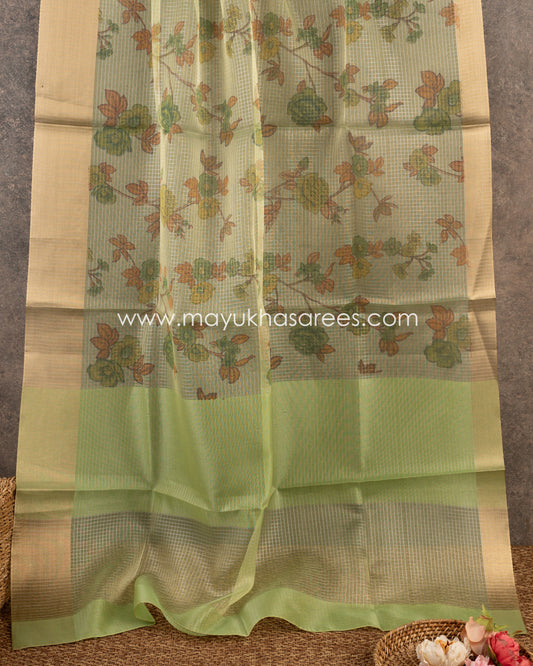 Blossom Radiance: Pure Organza Saree With Floral Prints, Free Shipping And Stitched Blouse In Size 38-62