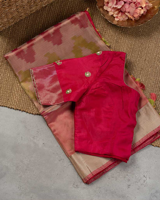 Ikkat Printed Silk Saree with Pink Handwork cutdana work Blouse | Blouse Size 38-44” | Free Shipping