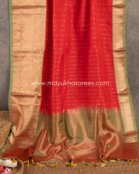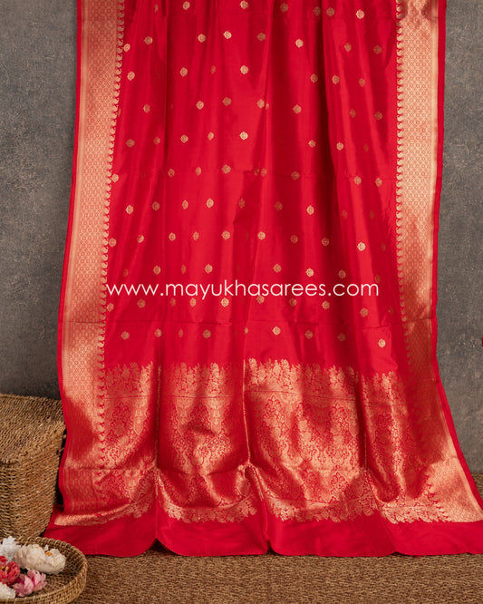 Crimson Elegance: Pure Banarasi Katan Silk Saree, Free Shipping And Stitched Blouse In Size 38-56