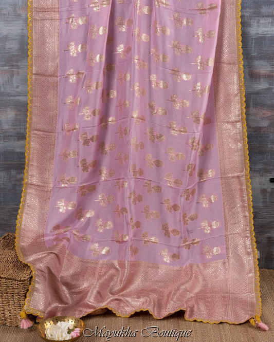 Pure Dola Silk Banarasi Pink Saree