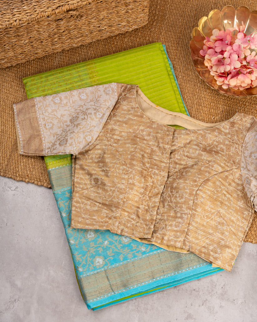 Blouse Fabric: Matching Blue Banarasi patterned blouse