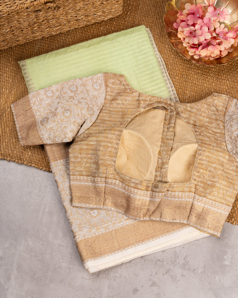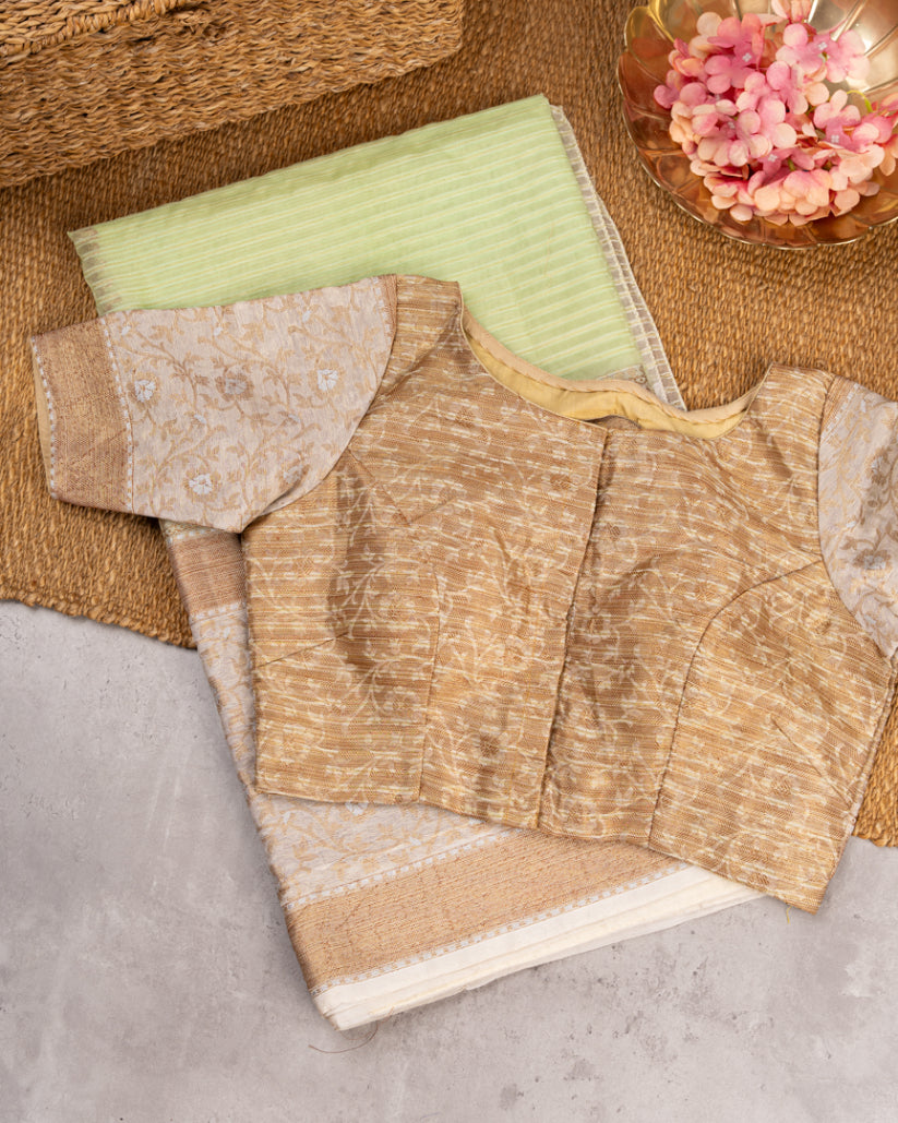 Blouse Fabric: Matching Beige Banarasi patterned blouse