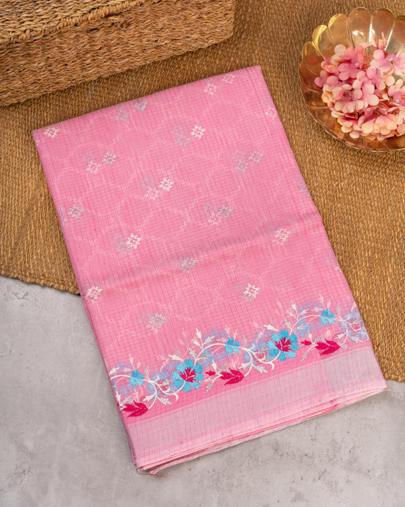 This Pastel Pink Kota Silk Saree with Embroidery and Silver Borders is perfect for women who love soft hues elevated by intricate detailing. Style it with pearl jewellery or minimal silver accents to create a look that feels graceful, feminine, and timelessly elegant.